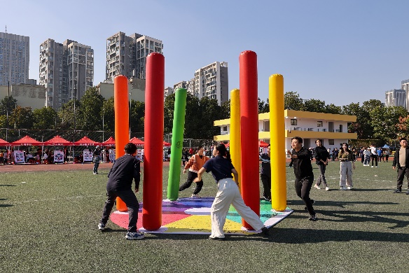 经过前期的认真组织与筹备,各系教职工团队踊跃报名,积极参与了六个趣味项目。物理系的老师们携手并肩,在“齐心协力”和“奋进新理工”项目中展现出了非凡的默契与实力;力学系的老师们则以他们在日常教学和科研工作中积累的团队合作精神,在“合作共赢”项目中荣获全校第五名,同时在“龙腾行万里”项目中也有不俗的表现;机关的老师们同样不甘示弱,在“团结协作”和“拼搏进取”项目中展现出了顽强的拼搏精神。