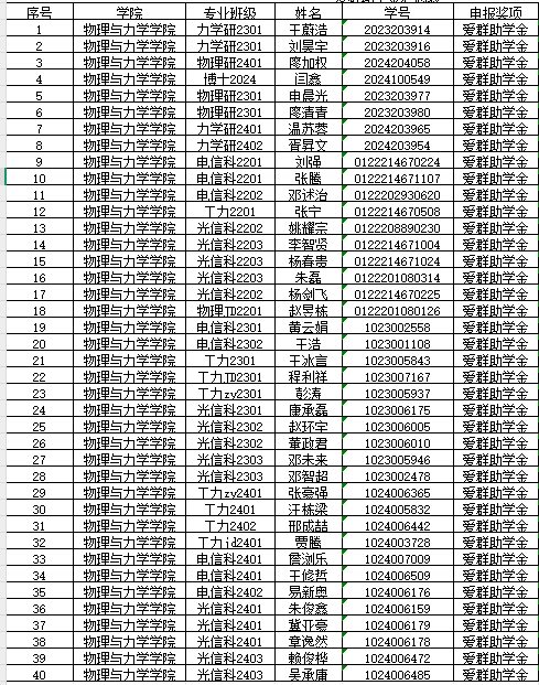 现将拟初评“爱群助学金”的学生名单予以公示: