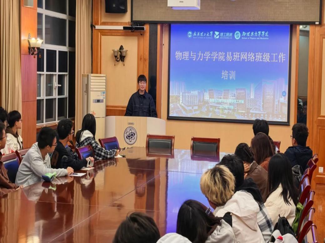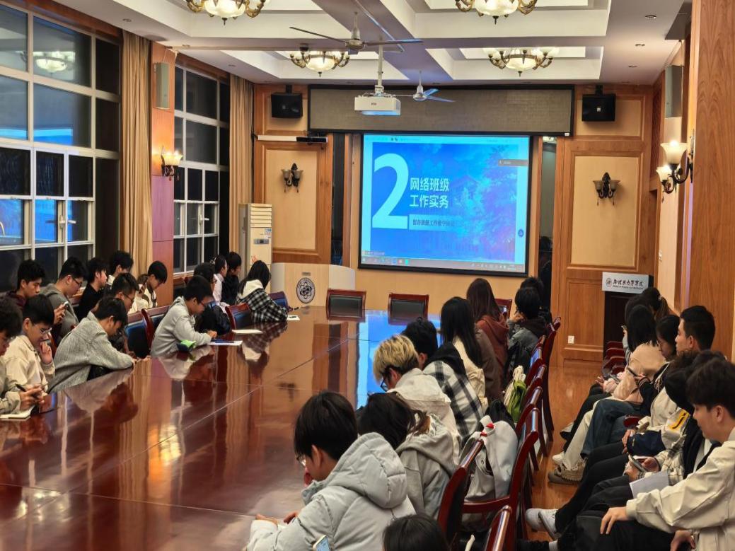 发布时间:2025-10-24为提升学院班集体建设水平,规范网络班级工作流程,10月21日晚,raybet最佳电子竞技平台易班学生工作站于理苑楼304会议室开展网络班级骨干专题培训。本次培训由学院网络班级负责人王子鹏主持,院易班指导老师刘杨、新生辅导员沈求峰出席,学院各年级网络班长、通讯员、网络班级骨干参与。