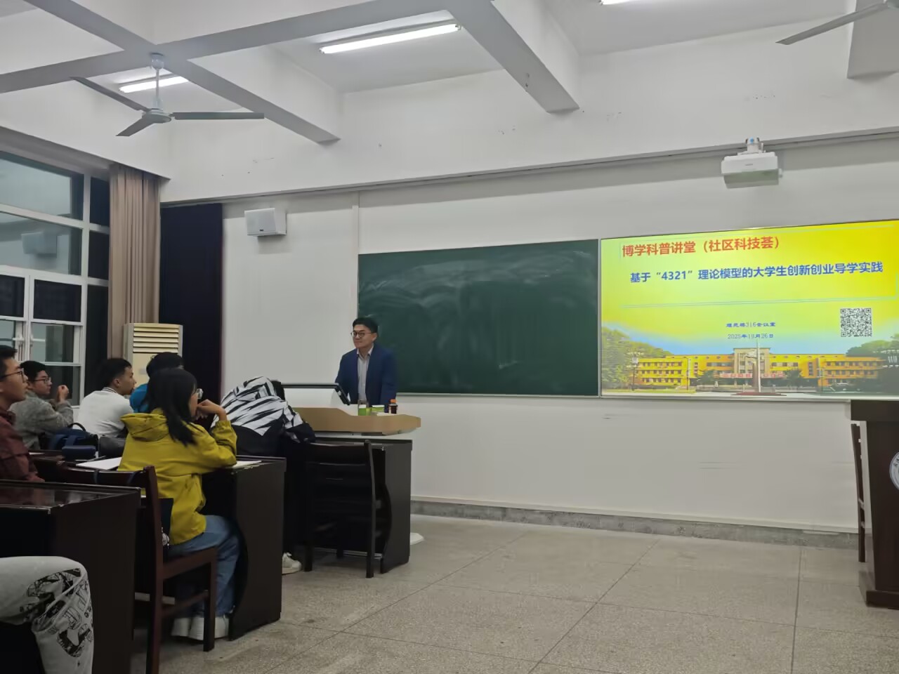 在讲座核心环节,浦实老师详细拆解了其独创的“4321”理论模型。他从多个维度与阶梯,系统讲解了创新创业的实现途径、科学方法,以及开展创新创业所需具备的素质与能力。这不仅让同学们掌握了创新创业的实操方法,更引导大家学会规划个人的创新发展路径,深化了对 “为何创新、如何创新”的理解。