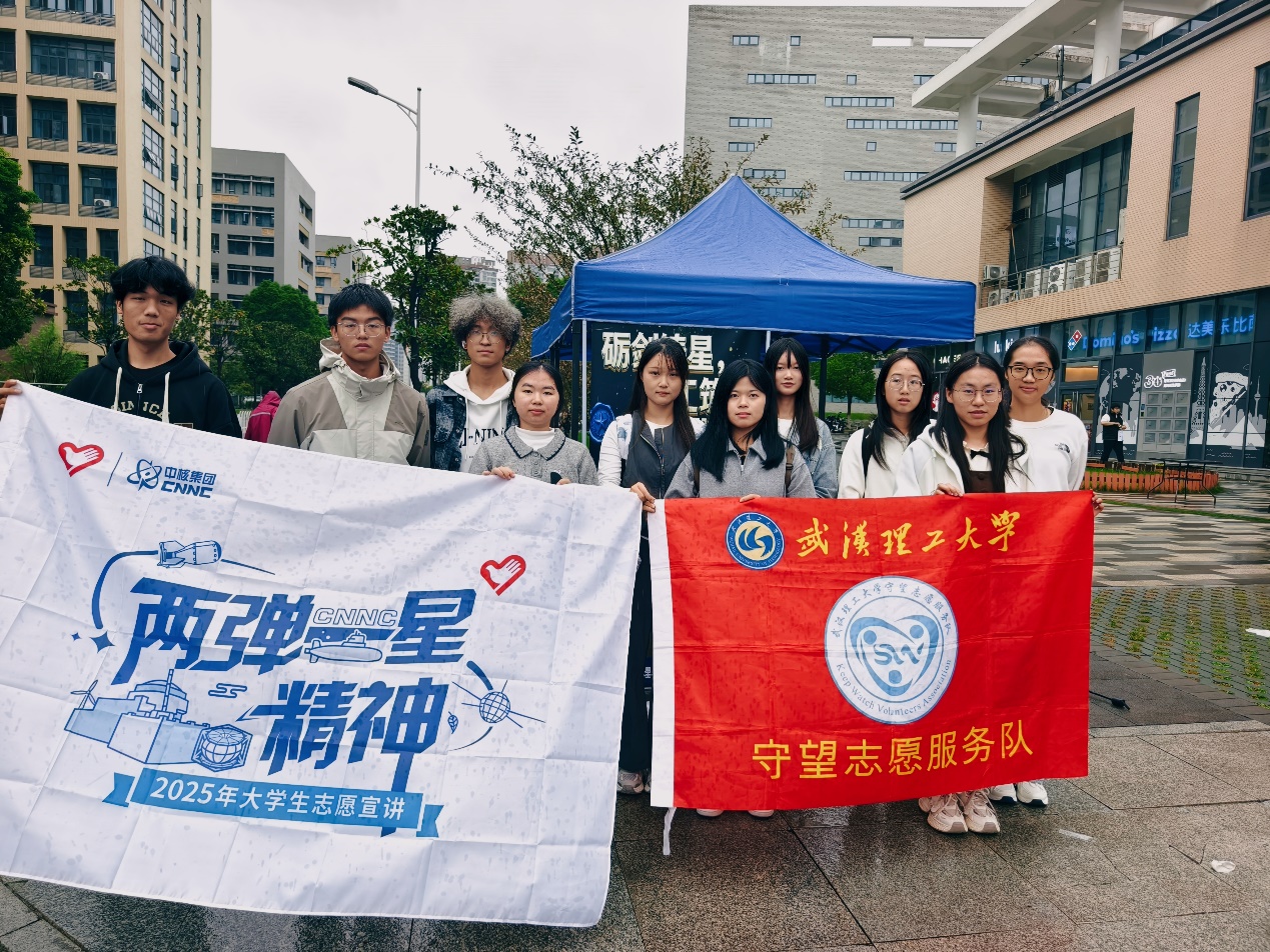 发布时间:2025-10-21为深化党的创新理论武装,发扬“两弹一星”精神,2025年10月18日,raybet雷竞技网站守望志愿服务队在raybet雷竞技网站南湖校区开展了以“利剑铸星,核工筑梦”为主题的宣传活动。
